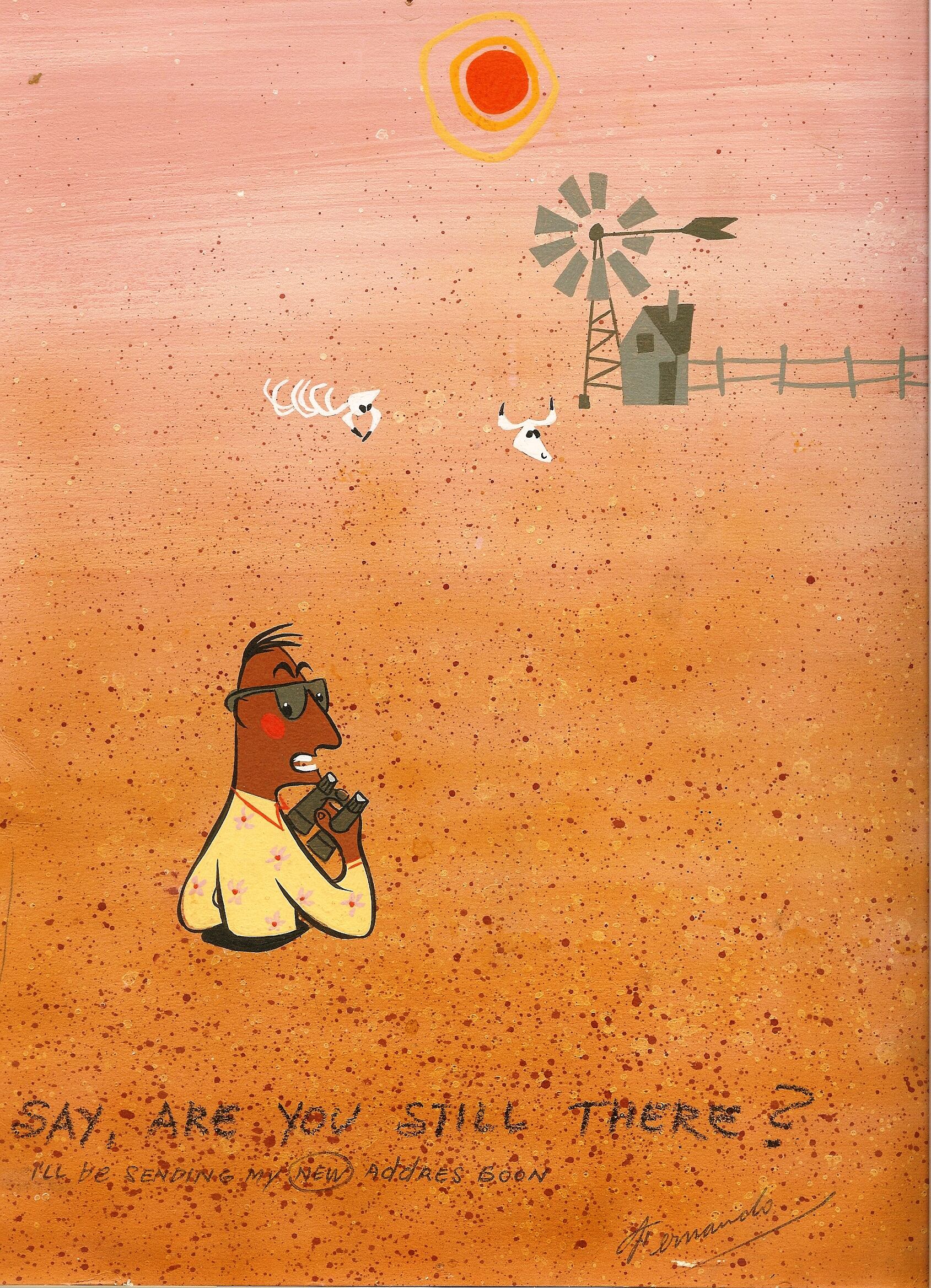 “Un día entré al cubículo de Monte en Hanna Barbera cuando él estaba realizando una pintura de mediano formato con pintura acrílica a la espátula y, como a mí me interesó esa técnica que no conocía y me gustó el tema, decidió regalármela. Hasta donde sé, él nunca vendió una pintura, ya que no le gustaba comerciar con su arte. Es más, Joe Barbera le pidió que hiciera unas pinturas por encargo para su oficina y Monte rechazó la oferta, pues para él la pintura debería venir del corazón y no por encargo”, nos explica su amigo Jim Fresquez, quien había conocido a Monte en Marenello School of Cosmetology de Los Ángeles.