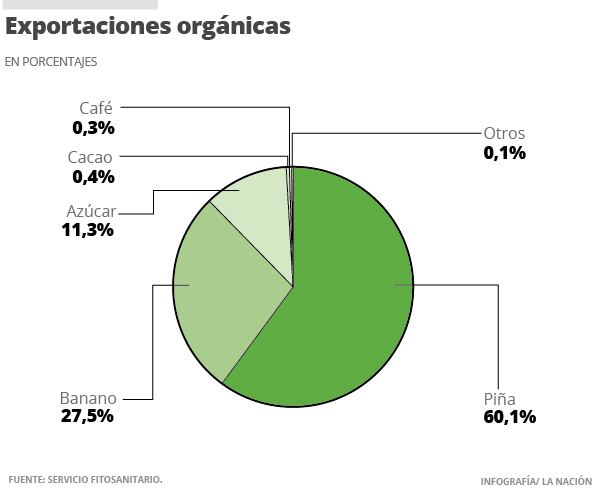 La piña, el banano y la caña de azúcar concentran el 98% de las exportaciones de productos orgánicos de Costa Rica a Europa, el mercado principal de destino de ese tipo de bienes.
