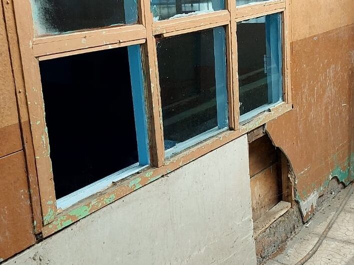 Sus 83 años ya dejan marca. Cielorrasos, pasillos, ventanas, paredes evidencian el deterioro de décadas de atender clases y juegos de miles de niños, pero además delatan el abandono y la falta de mantenimiento.