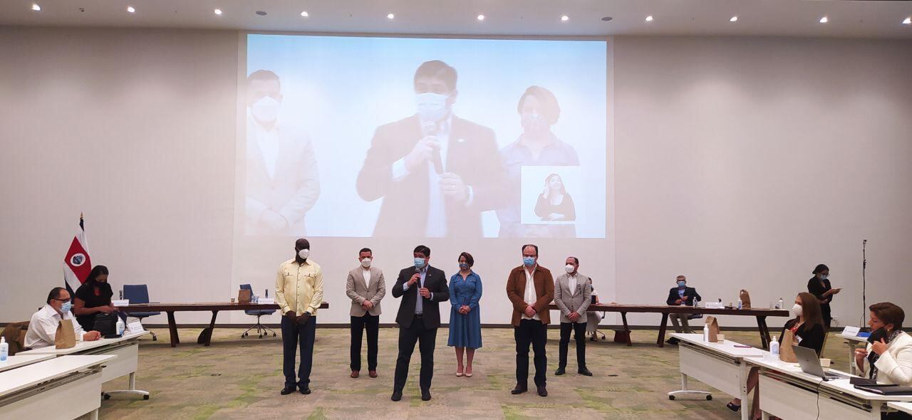 Acudieron a la firma el presidente del Congreso, Eduardo Cruickshank, y legisladores de la Comisión de Ciencia, Tecnología y Educación de la Asamblea Legislativa, donde se dictaminó el empréstito.