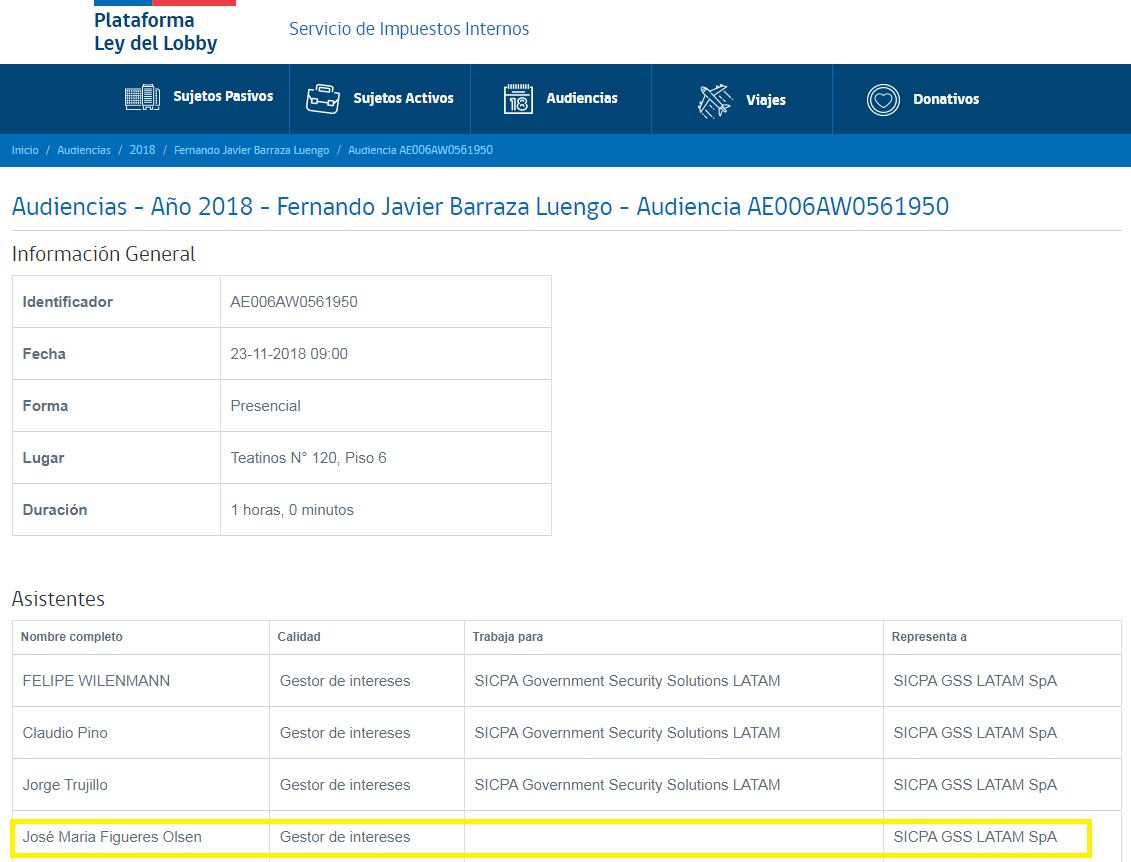 De hecho, Figueres aparece como representante de SICPA GSS LATAM SpA en la plataforma legal que se dedica a registrar las labores de lobby en Chile.