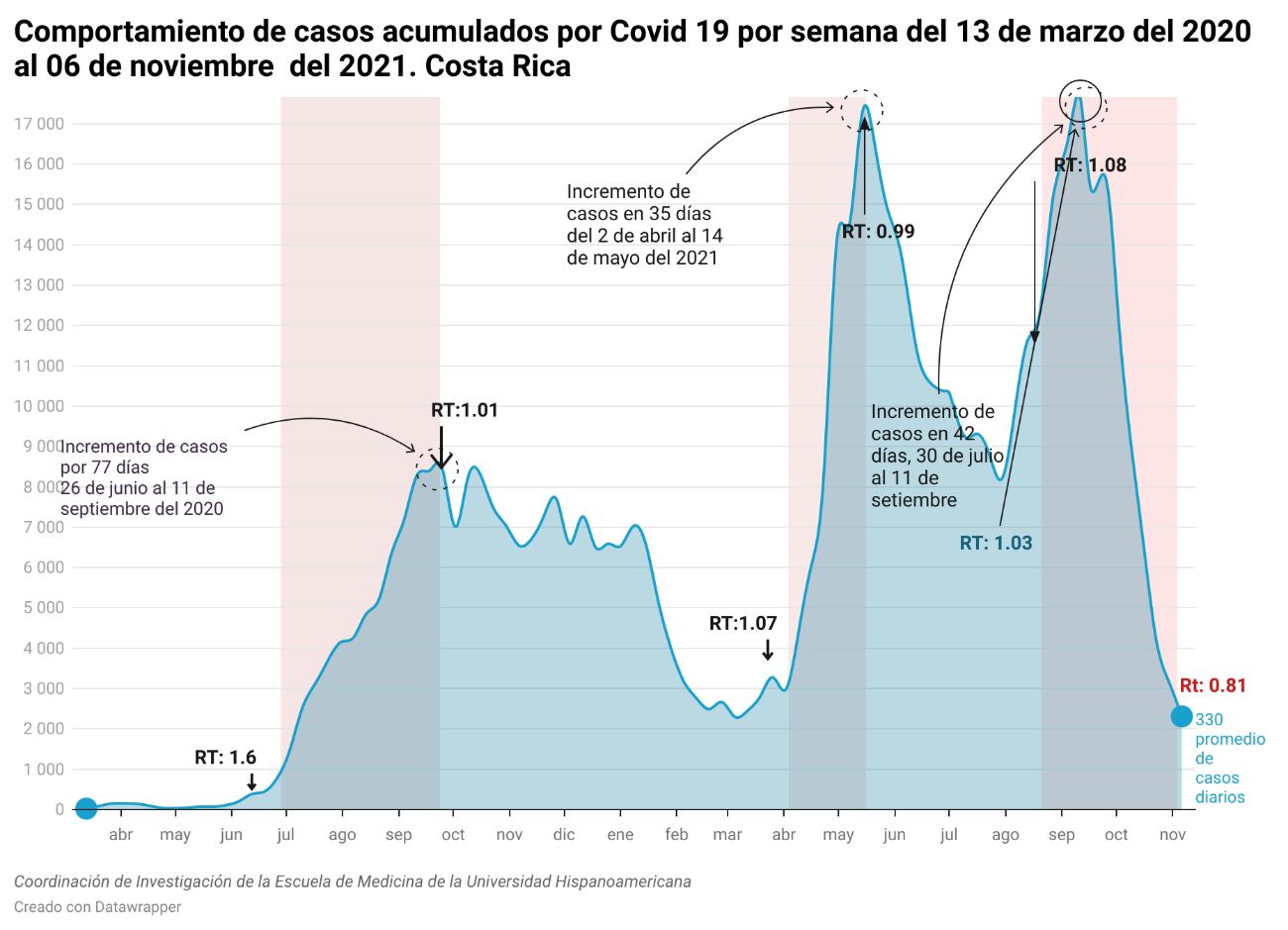 La tasa de contagio de covid-19 en Costa Rica subió por segunda semana consecutiva. Sin embargo, sus niveles bajos siguen dando un respiro a la población y a las autoridades sanitarias. Esta es una de las conclusiones del análisis semanal Una Pandemia en Perspectiva, elaborado por la Universidad Hispanoamericana y difundido la mañana de este viernes.