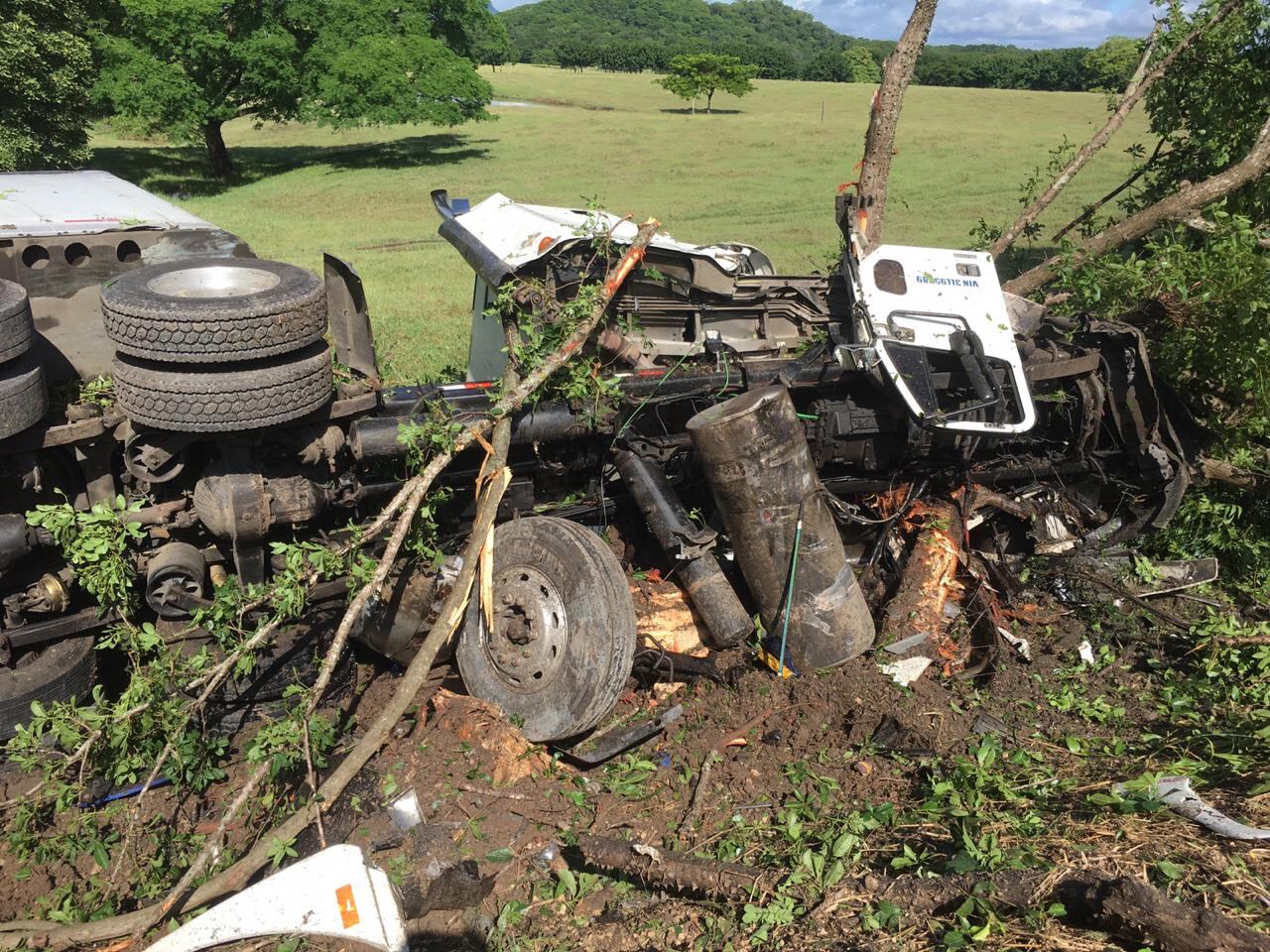 En el sentido contrario viajaba otro cabezal y, por razones que están bajo investigación, ambos vehículos pesados colisionan de costado.
