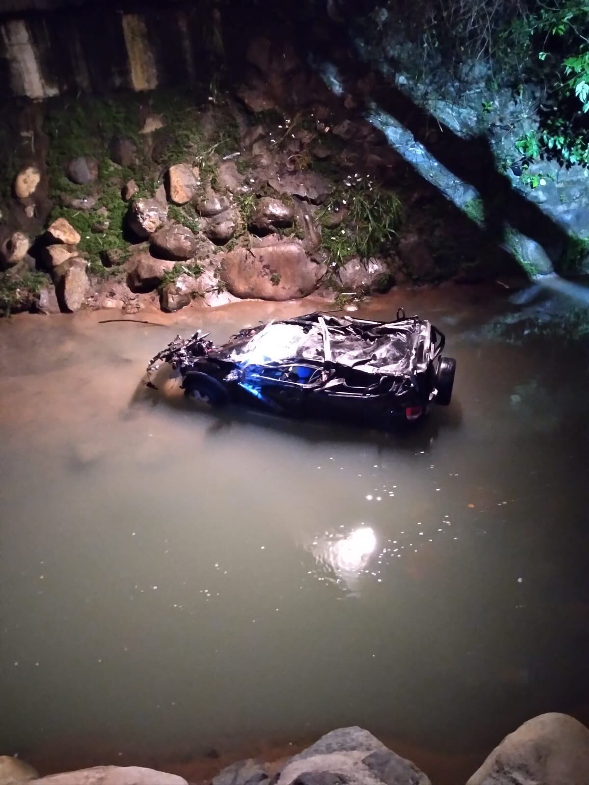 La Cruz Roja recibió la alerta a las 2:19 a. m. de este sábado. Unos lugareños escucharon el estruendo cerca del río y salieron a ver qué había pasado, por lo que alertaron al sistema 9-1-1 sobre la caída del carro al cauce del río.