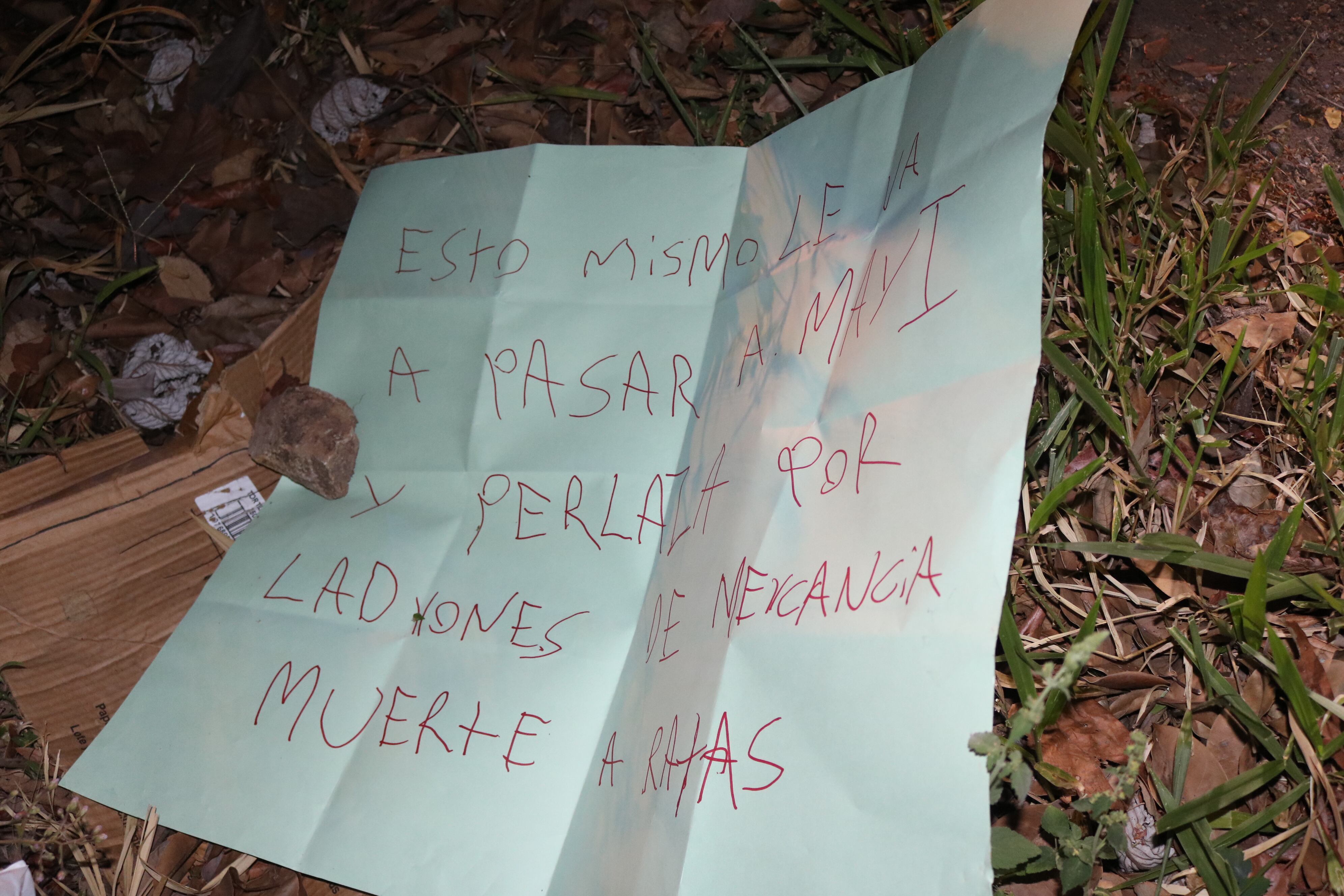 “Se trata de una cartulina celeste, con letras rojas. La nota fue escrita a mano”, detalló Calvo.