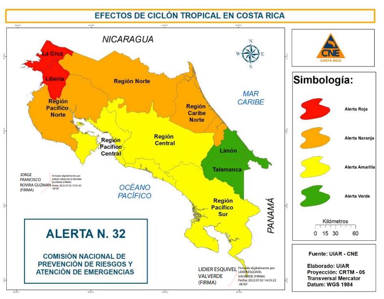 Añadió que durante el día la CNE continuará monitoreando el fenómeno con la asesoría del Instituto Metereológico Nacional (IMN), mientras que el Centro de Operaciones de Emergencia (COE) se mantendrá laborando de manera permanente para realizar coordinación entre las instituciones.