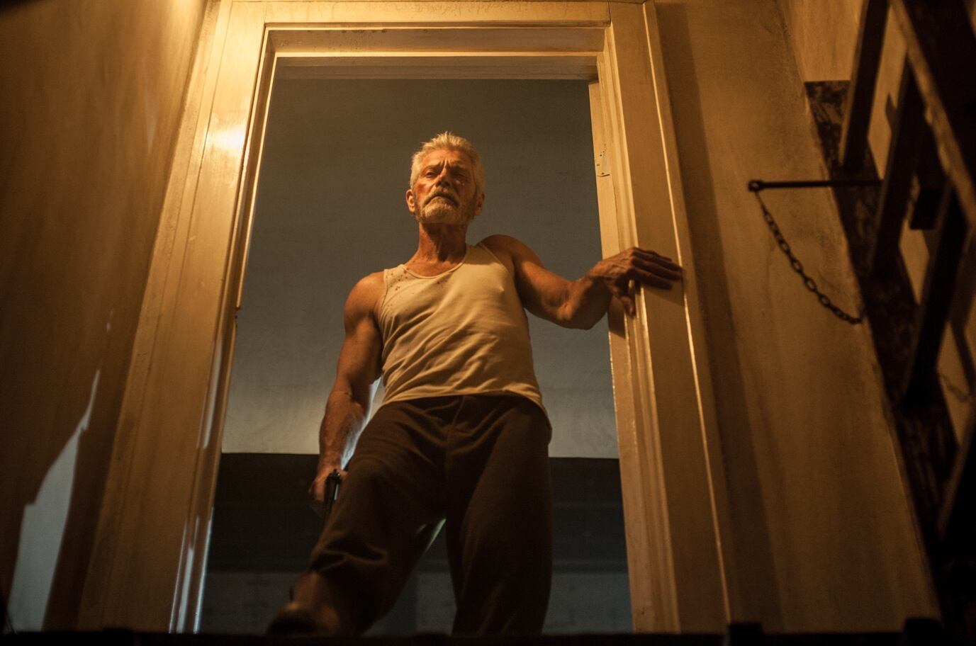 Punto clave del suspenso provocado por este filme es la actuación de Stephen Lang como el habitante de la casa, quien, con su ceguera, se enfrenta a los jóvenes ladrones mientras se muestra –en el proceso– como un tipo oscuro por dentro: ¿psicópata?